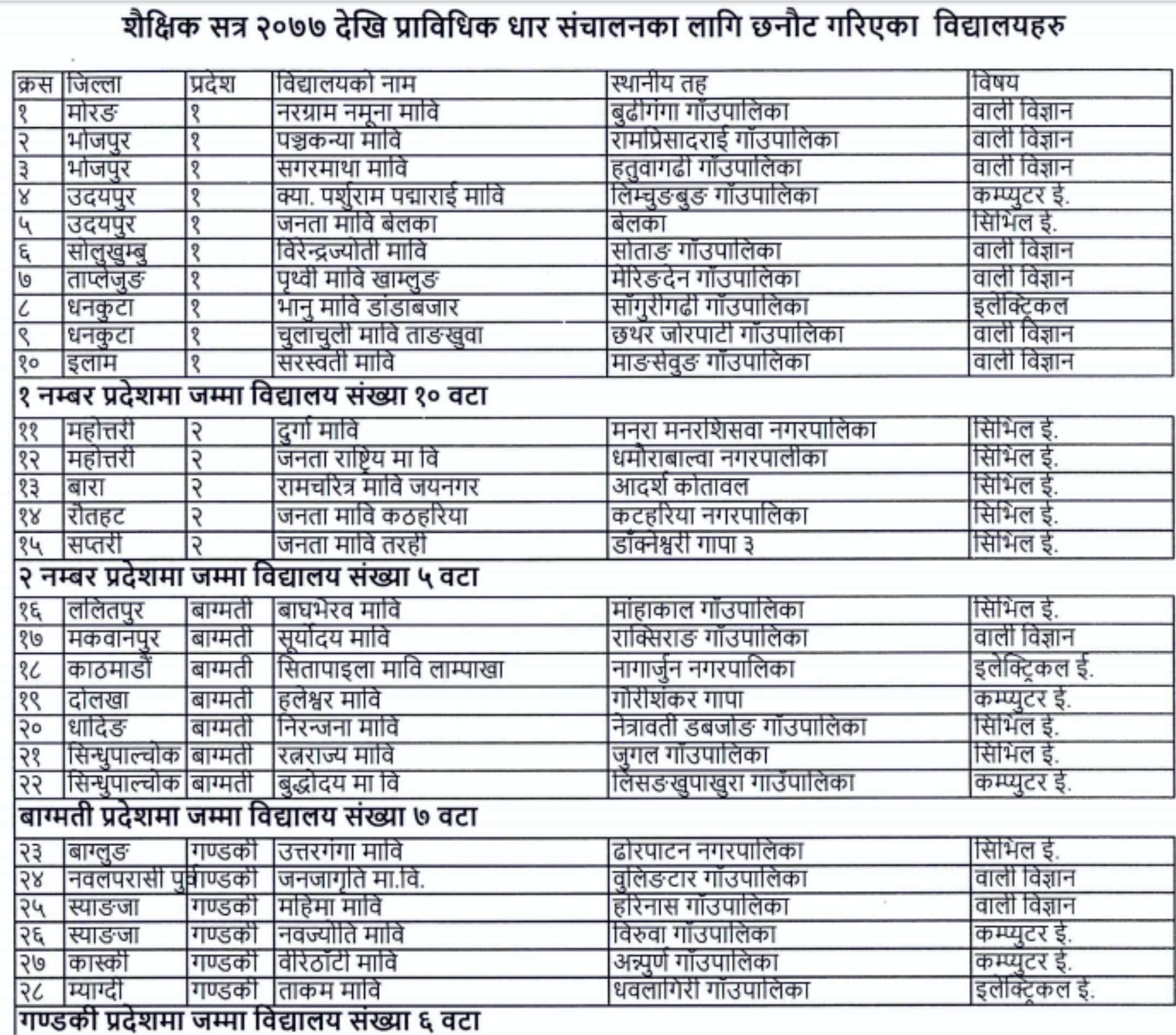 शिक्षा विभागले सरस्वती माविसहित प्रदेश नं १ का १० विद्यालयहरुलाई प्राविधिक धार सञ्चालनका निम्ति छनौंट गरेको हो ।