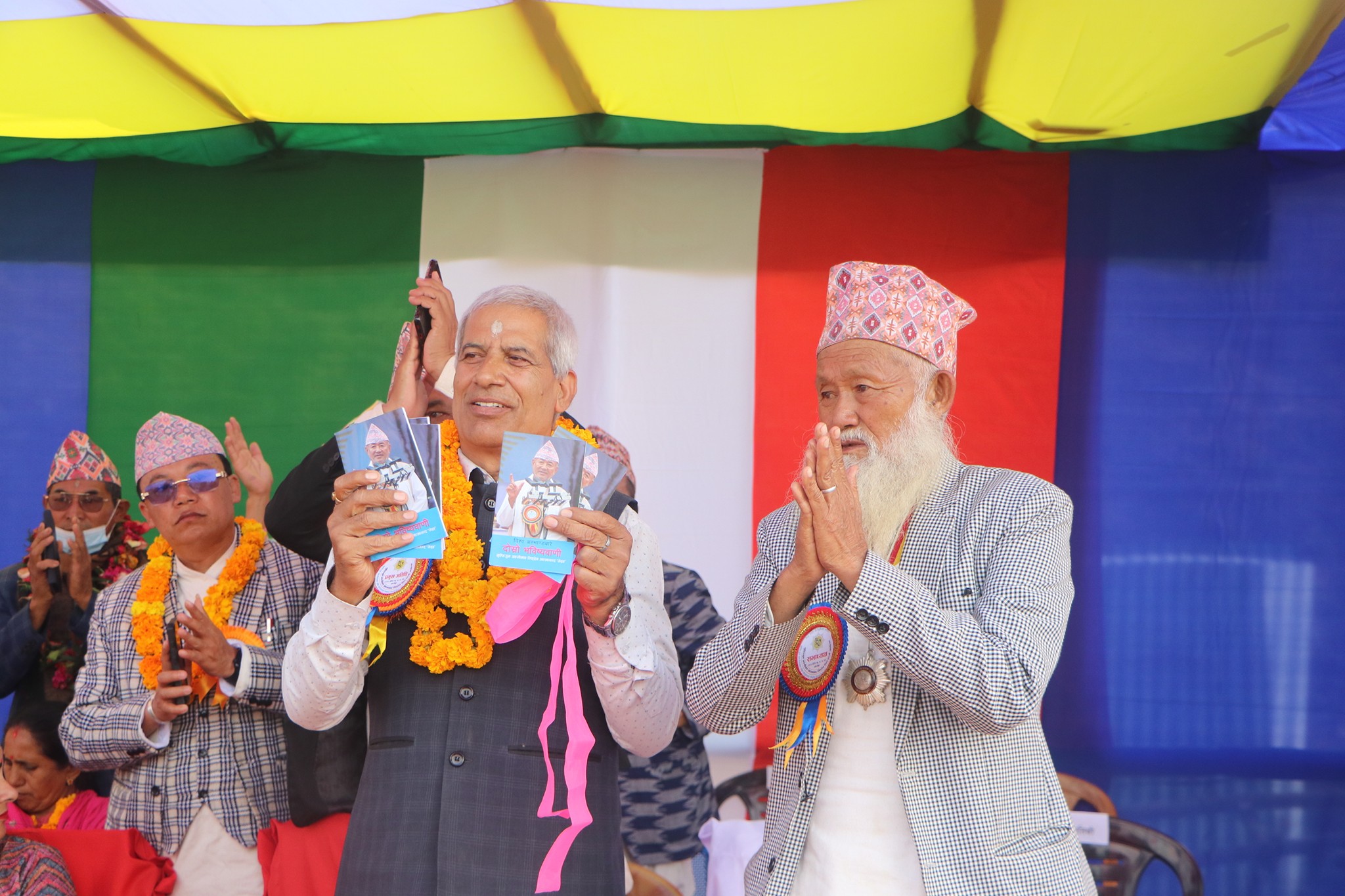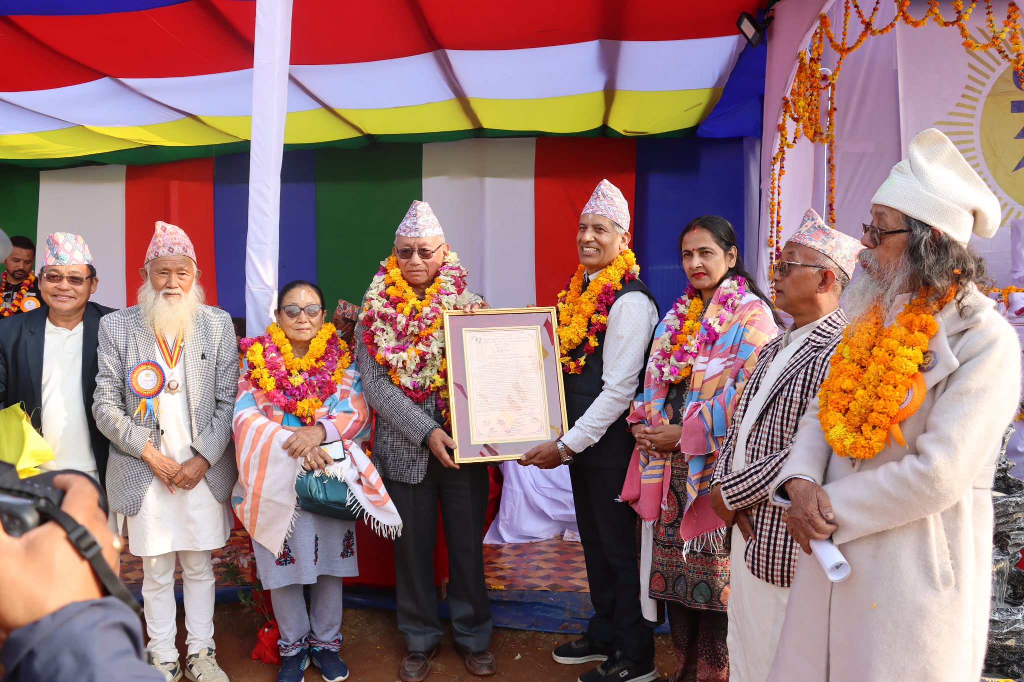 ‘हामीसँग मार्ग दर्शन, मुन्धुम, भाषा, साहित्य, लिपि सबै छ । यसको खोज अनुसन्धान गरेर विकास र विस्तार गर्नुपर्छ ।’ वहाँले आशीर्वचनमा भन्नुभयो, ‘हामीले धर्म कर्म सुधार गरेर लानुपर्छ ।’