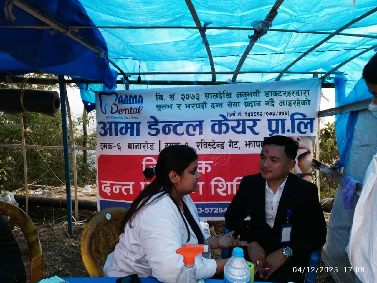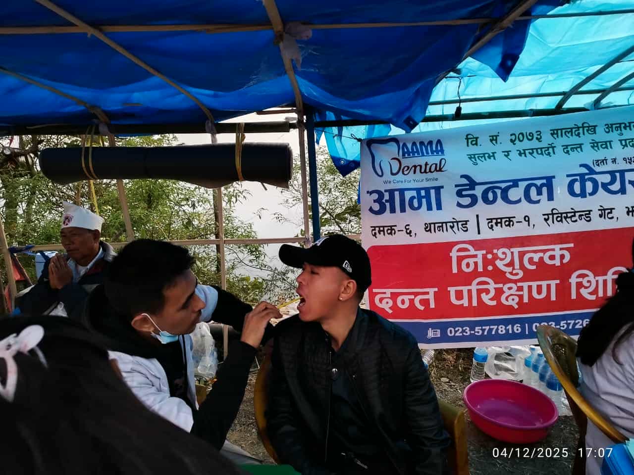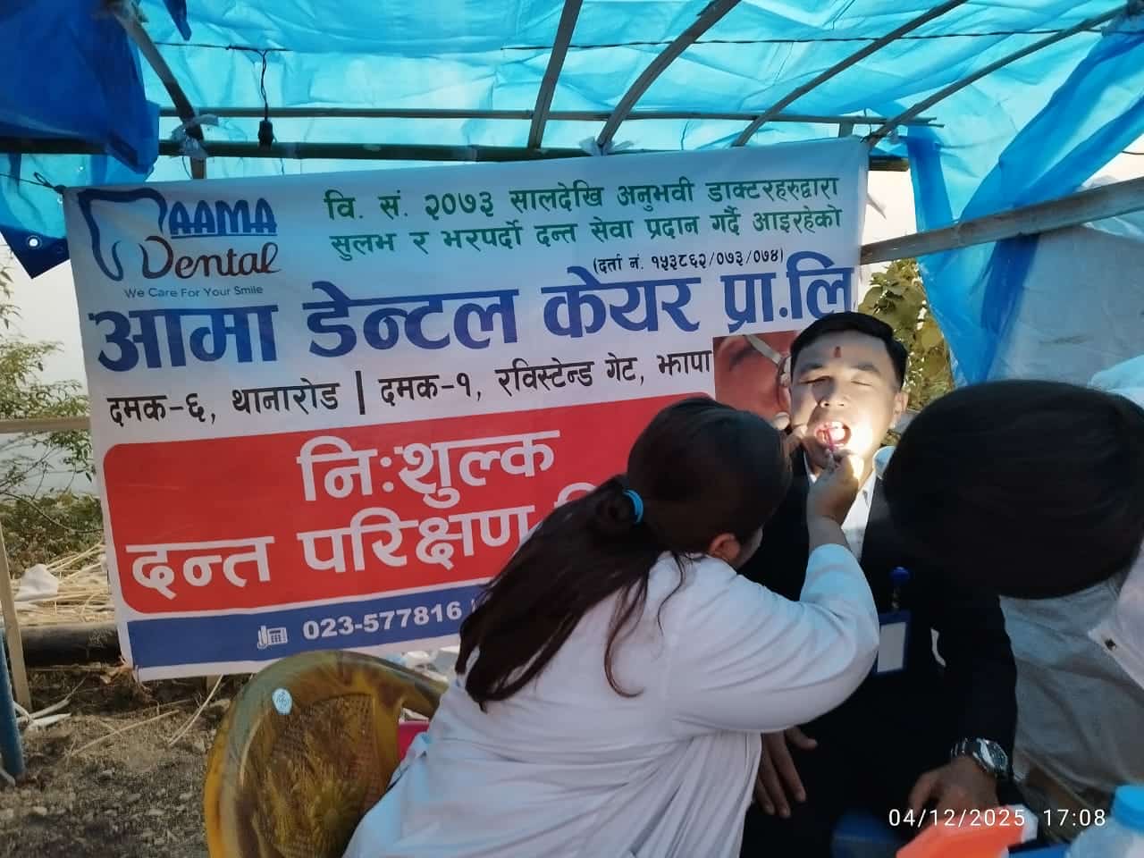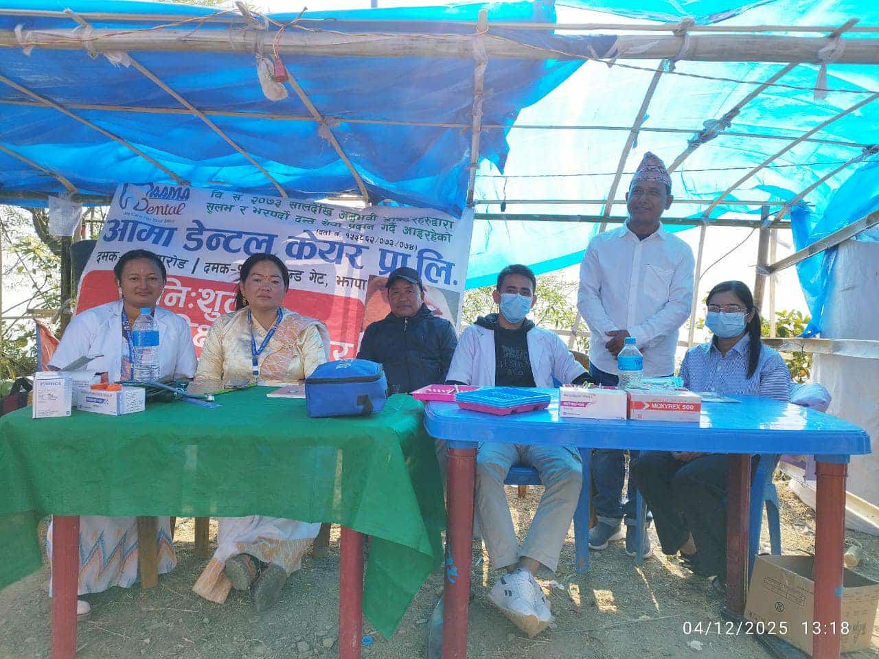किरात चोःलुङ मुहिङगुम आङ्सीमाङगेन्ना सेवा समिति माङसेबुङको आयोजनामा आमा डेन्टल केयर प्रा.लि.दमक ६, थानारोडस्थित प्रधान कार्यालय र दमक १, रवि स्टेन्ड गेटस्थित शाखा कार्यालयबा डा.मीरा आचार्य र डा.दिपक थापाको टोलीद्वारा गरिएको दन्त परीक्षण करिवन दूई सय जनाले दन्त परीक्षण गराएका थिए ।