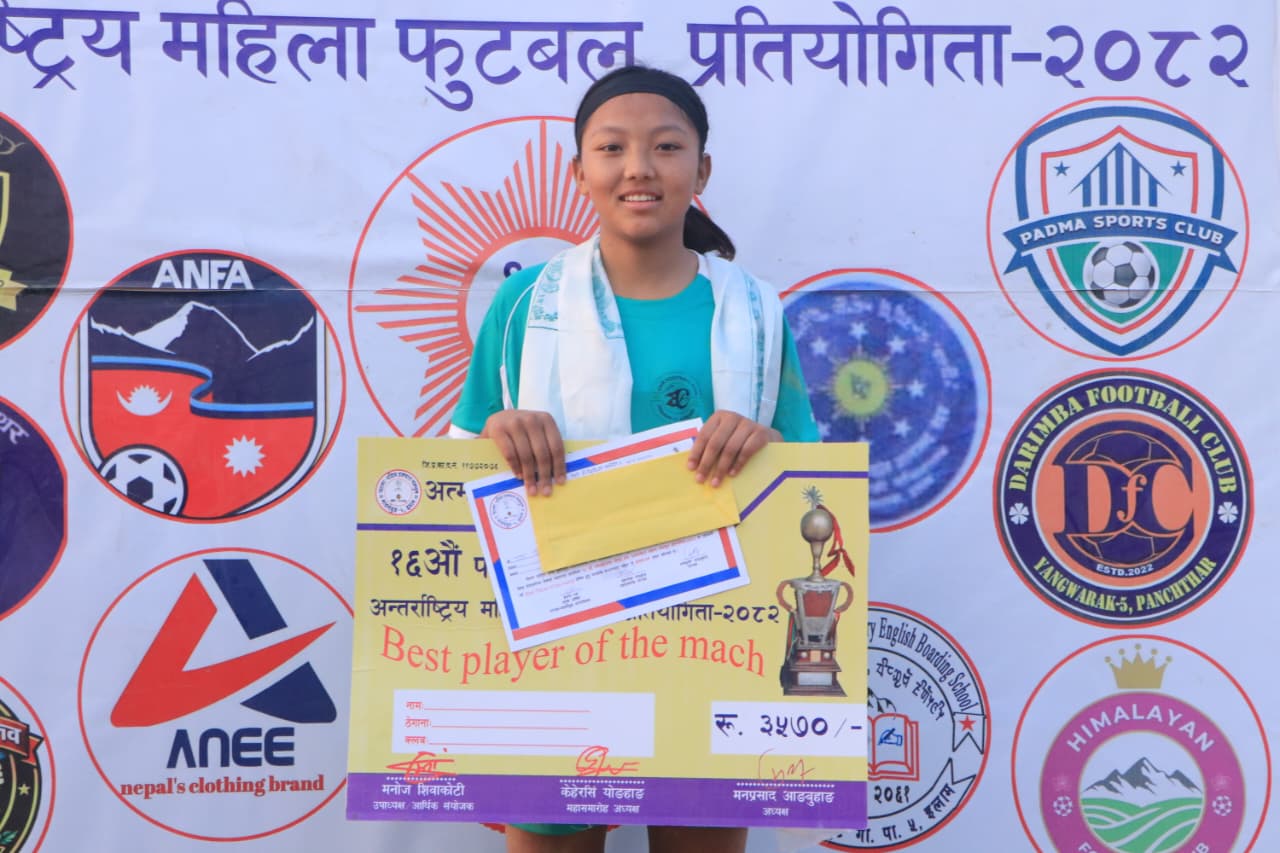 खेलको प्लेयर अफ द म्याच सुनसरीकी गोल रक्षक गंगा गुरुङ घोषित घोषित हुँदै नगद ३ हजार ५ सय ७० प्राप्त गरिन् ।